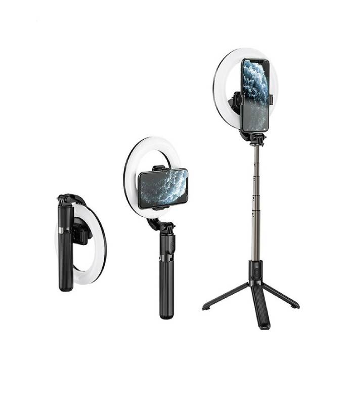 با گسترش کسب و کار در فضای آنلاین و نیاز به عکس ها و ویدئو های جذاب برای فروش بیشتر محصولات، بررسی محصولات ،تولید محتوا و نشان دادن نمونه کار ها مانند آرایشگری و بلاگری و غیره….دیگر نیاز به رفتن به آتلیه های عکاسی با هزینه های گزاف و صرف زمان طولانی نیست .چرا که با تلفن های همراه نسل جدید که دارای دوربین های فوق العاده هستند و با وسایل ساده عکاسی می توان در خانه،محل کار و یا هر مکانی بهترین عکس ها و ویدیو ها را ثبت کرد . یکی از المان های یک عکس خوب، نورپردازی آن است. رینگ لایت ها که از پایه و حلقه تشکیل شده اند قابلیت نورپردازی با نورهای مختلفی از جمله نور سرد و گرم را دارا هستند و باعث جذابیت هر چه تمام ترعکس می شوند .کمپانی هوکو یکی از بهترین رینگ لایت های موجود را با نام LV03 PLUS LIGHT HOLDER تولید و وارد بازار کرده است.رینگ لایت LV03 هوکو دارای باتری با ظرفیت 1200 میلی آمپر ساعت می باشد که با 200 دقیقه شارژ می توان حدود 4 ساعت از آن استفاده نمود . برای استفاده از رینگ لایت LV03 هوکو اتصال از طریق بلوتوث با ورژن 4.2 امکان پذیر می باشد از رینگ لایت LV03 هوکو هم میتواند به صورت مونوپاد (به صورت دستی) و هم به صورت قرارگرفتن ثابت در فاصله نزدیک استفاده کردو لازم به ذکر می باشد که پایه آن را در سایزهای مختلف می شود تنظیم کرد یکی از ویژگی های مهم آن داشتن ریموت(کنترل) برای استفاده از فاصله دور می باشد .رینگ لایت LV03 هوکو قابلیت چرخش 360 درجه تلفن همراه را دارد و هنگام پخش زنده در فضاهای باز و بسته، عکاسی و غیره کاربردی می باشد. علاوه بر این رینگ لایت LV03 هوکو سازگاری با دامنه وسیع ،قابل استفاده برای تلفن های همراه هوشمند با ابعاد 4.7-6.5 اینچی و محدوده بازشونده گیره 60-95 میلی متر را دارد و مناسب بیشتر تلفن های همراه موجود در بازار می باشد. رینگ لایت LV03 هوکو دارای قابلیت تنظیم و کاهش دهی نور و تغییر رنگ نور گرم به نور سرد می باشد و سایز نور پردازی 6 اینچ/ قطر خارجی 170 میلی متر است. این محصول با جنسی از آلیاژ آلومینیوم + ABS ، بسیار مقاوم و بادوام است که با وجود وزن 304 گرم و ارتفاع باز شده تا 80 سانتی متر بسیار سبک و قابل حمل شده است.رینگ لایت LV03 هوکو با داشتن تمام امکانات لازم ثبت لحظه ها و تمام استاندارد های بین المللی یکی از بهترین ها در بازار می باشد .