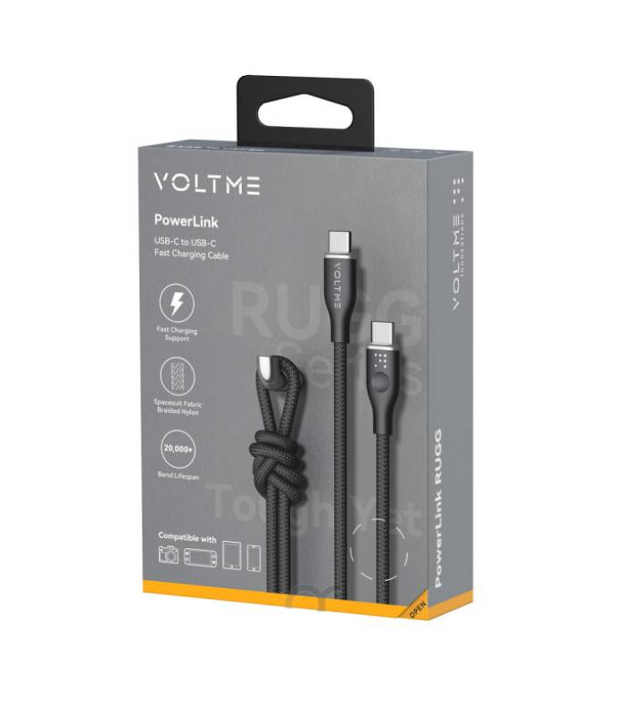 کابل شارژ ولتمی مدل Voltme Powerlink Rugg Double Nylon Cable Type C to Type C 3A / 1M (60W) Black